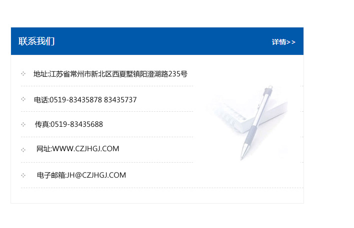 傳真:0519-83435688    郵編:213135    網址:WWW.czjhgj_com.hongyuyule.com    電子郵箱:JH@czjhgj_com.hongyuyule.com